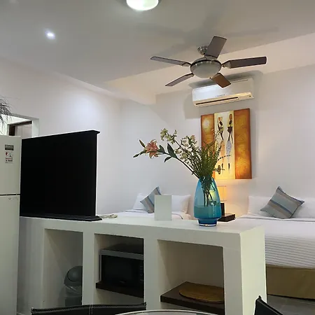 Rummen på Almarea Vacation Condo i Playa del Carmen har mörkläggningsgardiner, strykjärn med strykbräda och strykutrustning. Vissa av dem har matplats och ett kök, och är inredda med skrivbord. De är också försedda med kylskåp, köksredskap och glas. Gästerna kan använda en dusch samt torktumlare.